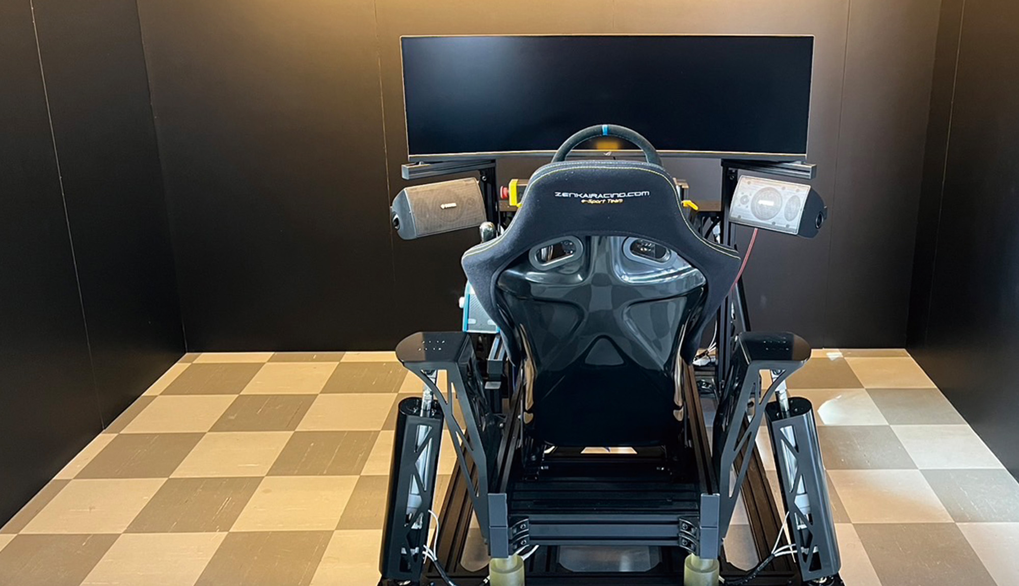 ZENKAI-RACING製の4.1軸レーシングシミュレーターを使用しており、実車に近い感覚のSIMをお楽しみいただけます。